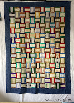 This top for one is done! All from scraps except for the borders. Yeah for me as I will never have to touch those scraps again. Part of my goal for April is to make a few more blocks from scraps. This brings a total of 5 tops to go to my lovely LAer. Three more backings need to be made and some frankenpieced batting need to be done.
